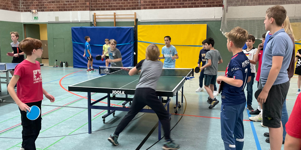 Milchcup? Der traditionelle Name steht für ein NRW-weites Schulturnier im beliebten Tischtennis-Rundlauf. In Viererteams (jeweils plus ein(e) ErsatzspielerIn) treten die Schuklassen in Jungen- und Mädchengruppen gegeneinander an und bringen die Schläger zum Glühen.